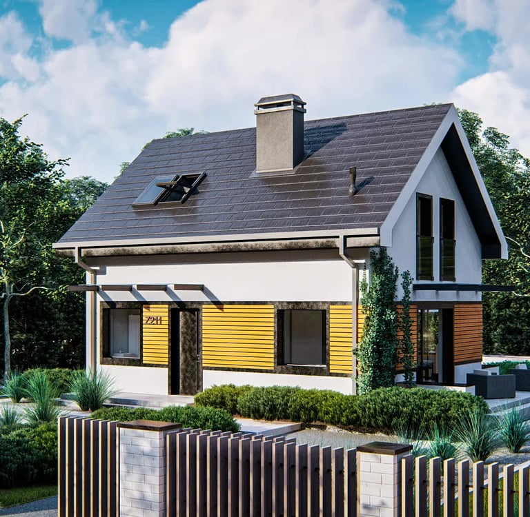 Mały dom z poddaszem, funkcjonalny i ekonomiczny w budowie i utrzymaniu.