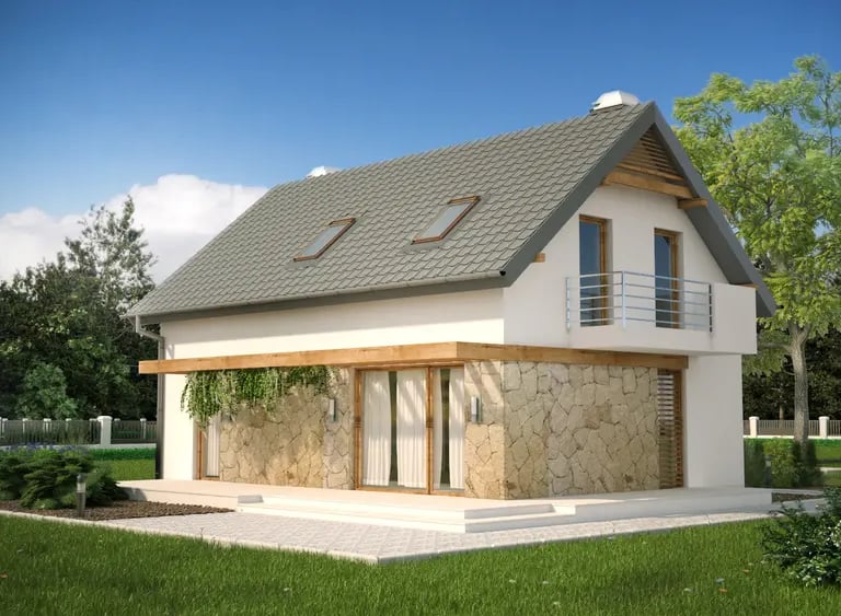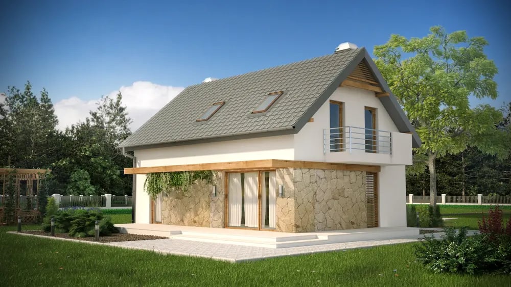 Kompaktowy dom z poddaszem użytkowym o funkcjonalnym wnętrzu.